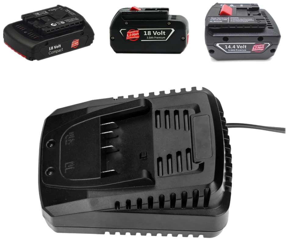 Oplader voor de 14,4V en 18 Volts schuifaccu’s van Bosch