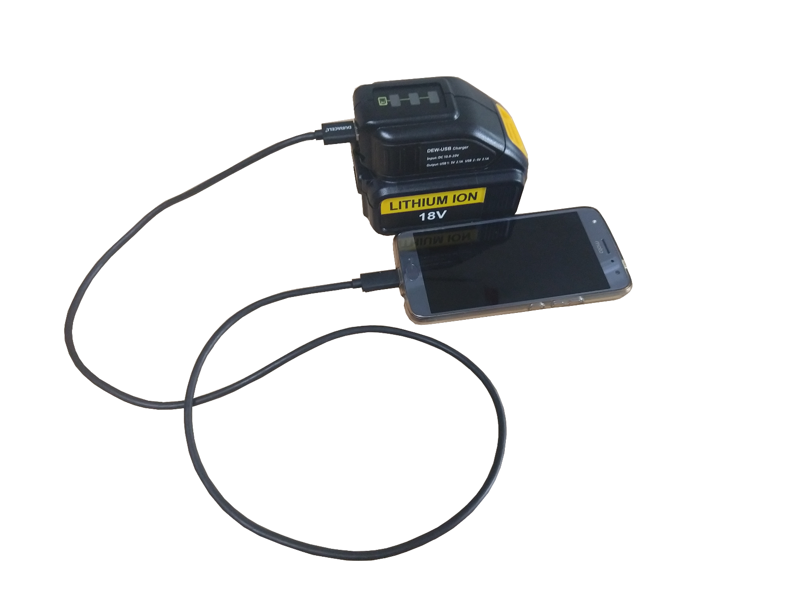 USB Adapter voor DeWalt accu’s, laad 2 apparaten tegelijk op